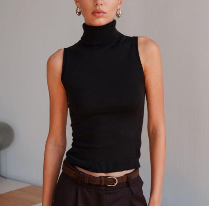 Безрукавка Гольф Kookai, XS–S Еластична тканина: віскоза з додаванням поліаміду та еластану. Дуже приємна тканина, якісна Помірно тягнеться, понизу — м’яка резинка. Стан — нової. 📏 Параметри: Плечі — 30 см Груди по — 38 см Ширина по — 33 см Пройма — 20 см Довжина — 53 см