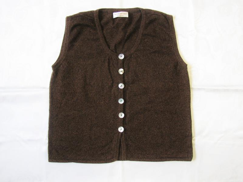 Важливо, якщо Ви хочете купити цей товар, почніть діалог із продавцем, уточніть наявність товару, і ознайомте умови покупки. Класичний жилет. Склад: 100% чистий кашемір. Ґудзики натуральний перламутр абалон. Колір: шоколадний меланж. Розмір L. Заміри по виробу в спокійному вигляді: НОГ 52+ см, довжина 58 см.