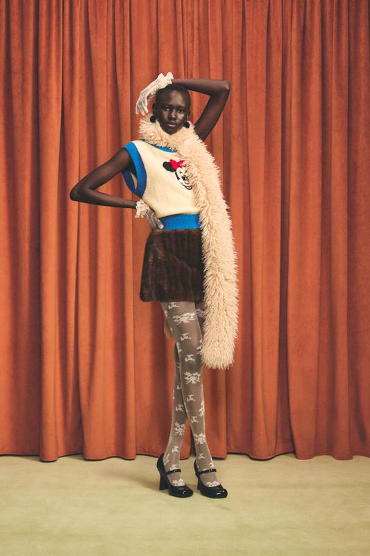 Вкорочений в'язаний жилет із вовняної змішаної пряжі. Круглий виріз горловини та пройми без рукавів. Попереду інтарсія із зображенням Мінні Маус © Disney. Контрастне оздоблення в рубчик. 90% ВОВНА 10% акрил Груди 50 см довжина спереду 49.5 см ширина спинки 41 см