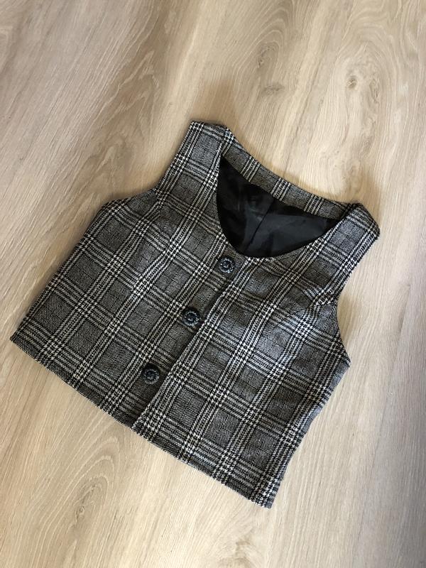 Комплект складається з жилетки та шортів. Жилетка на 3 ґудзики вкорочена, з підкладкою індивідуальний пошив.класна тканина, має сріблясту нитку. 41 ширина 42 см - довжина Розміру з, можливо хс хзаміри при необхідності надам. Можна окремо шорти чи жилетку.