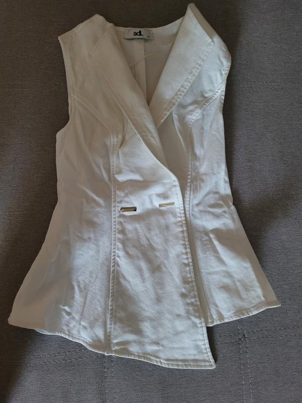 елегантний жилет з деніму, тримає форму, застібка на кнопку, дуже ефектно виглядає.розмір s