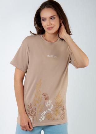 Стильная футболка oversize для женщин из легкого стрейч-кулира. Модель с короткими рукавами и округлым вырезом, предлагается в разных цветах с актуальным в этом сезоне принтом, выполненным методом шелкотрафаретной печати, в сочетании с вышивкой. Футболка отлично комбинируется с джинсами, шортами, леггинсами. Полотно хорошего качества, не линяет, натуральное по составу, может давать усадку. Полотно: стрейч-кулир Склад: 95% бавовна, 5% еластан Рекомендации по уходу: стирать при температуре не более 30°C. Допускается стирка в режиме "ручная" или "деликатный", принт гладить только по изнаночной стороне.