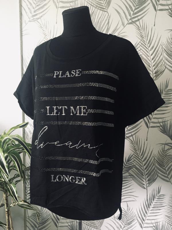 🔥Шикарна🔥 футболочка відмінної якості декорована кристаликами . Туреччина. Бавовна. Йде в одному розмірі (можна від Л (як оверсайз) до ХХХЛ), дивіться заміри! 👇 Дуже якісна тканина. Виглядає просто бомбезно 😻 Футболочка - бавовна, пряма, вільна, рукавчики йдуть з підворотами, низ необроблений, ззаду футболочка йде трішки довша. Красива і оригінальна моделька! Всього залишилося дві штучки : в чорному і м'ятному кольорі. В наявності ще багато дуже красивих футболок з різними принтами, кристалами і різних кольорів! Дивіться всі мої оголошення! 😊👍 Заміри : довжина від плечового шва спереду - 62-63, ззаду - 66-67, плечі - 65 (спущені), пог - 58 , пот - 55 , по низу - 58.