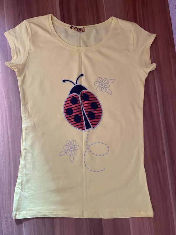Футболка з сонечком Довжина по центру спинки 58 Ширина в грудях 38 Дивіться мою Шафу - є подарунки / бонуси при купівлі будь-якої речі 1:1 🎁