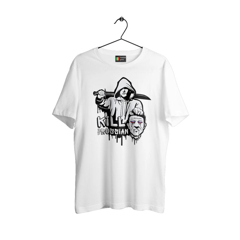 Футболка унісекс, розмір М, з принтом "Kill the Russian". Відмінний стан, майже не носилась. Стильний дизайн і комфортний матеріал, що підходить для щоденного використання. Не сідає при пранні. Комір з еластану не мнеться при віджиманні. Ідеальний варіант для любителів нестандартних принтів. Чудовий подарунок для кожного українця🇺🇦 Склад: 100% бавовна (для сірого кольору 85% бавовна / 15% віскоза), 150 г/м². Догляд: Звичайне прання за температури води до 30°C. • Барабанна сушка заборонена. • Прасування при температурі підошви праски до 110°С (одна точка на регуляторі праски). • Прасування з парою може викликати незворотні пошкодження матеріалу. • Відбілювання заборонено. Додаткова інформація: Питання в особисті повідомлення, скину додаткові фото. Оплата: безпечною оплатою, післяплатою або передоплата 100% на картку Приватбанку💵