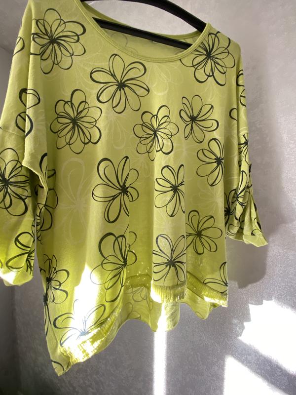 Футболка з квіточками та паєтками в низу Ог вільний -130 см Довжина перед - 58 см Довжина спина -68 см