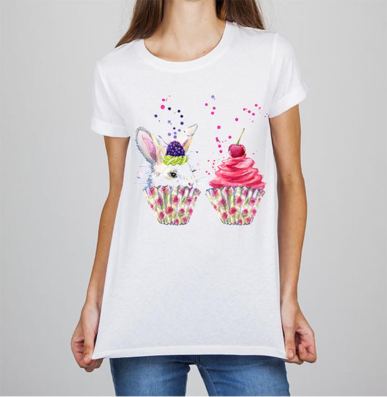 Женская футболка с принтом зайчик и пироженка push it