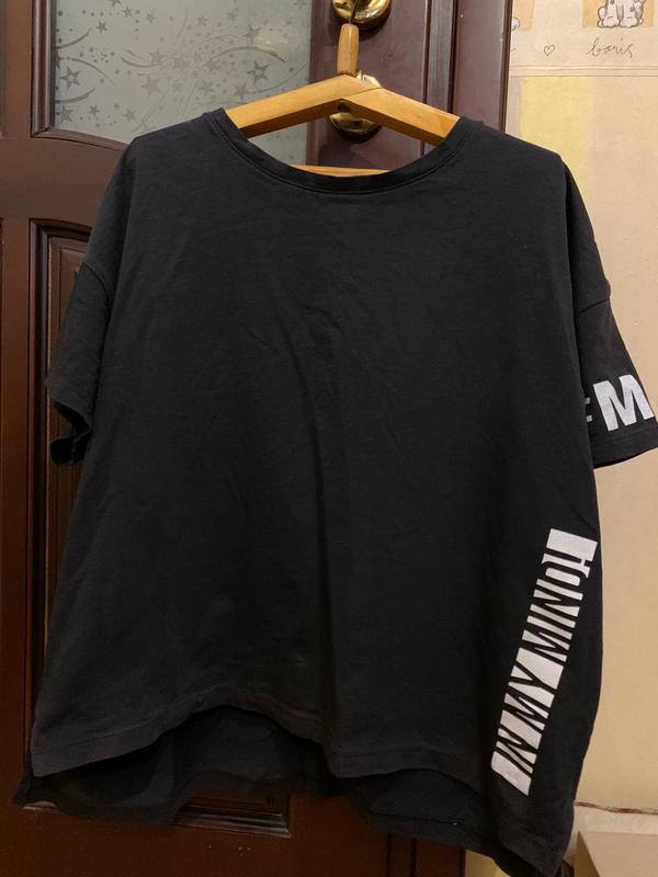 стильна і вільна футболка пог: 56; рукава трохи спущені, довжина рукава: 11 см; ширина плечей: 34.