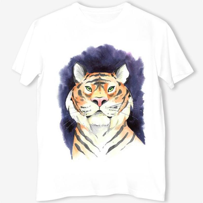 Футболка з новорічним принтом тигр на фіолетовому тлі push it