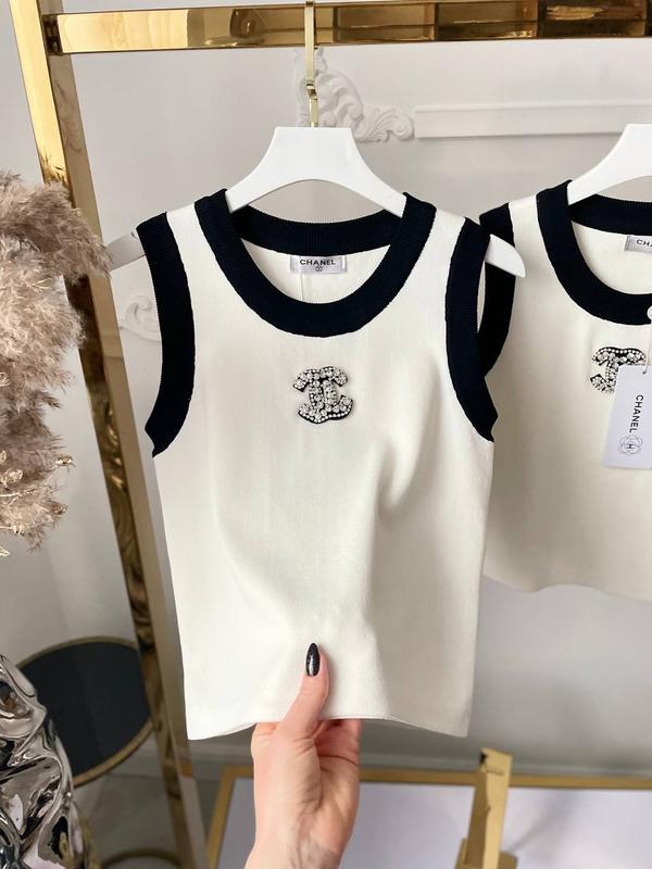 Майка топ біла в стилі chanel з брошкою