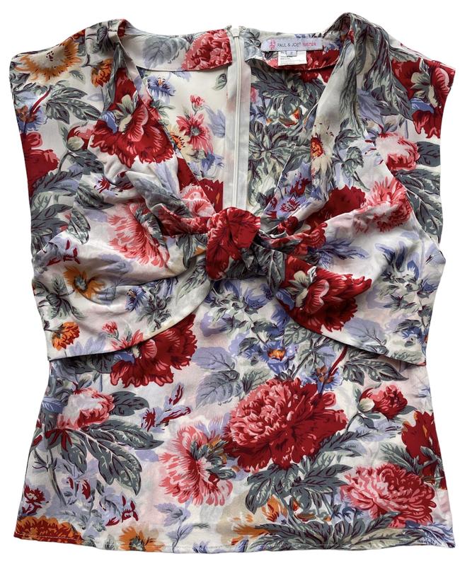 Шовковий топ від Paul&Joe у квітковий принт Стан чудовий, є мікронюанс, який жодним чином не впливає на загальний вигляд (загалом, будь-якому ательє можна прибрати) Розмір М (вказано 2) ПОГ - до 47 см Довжина - 53 см