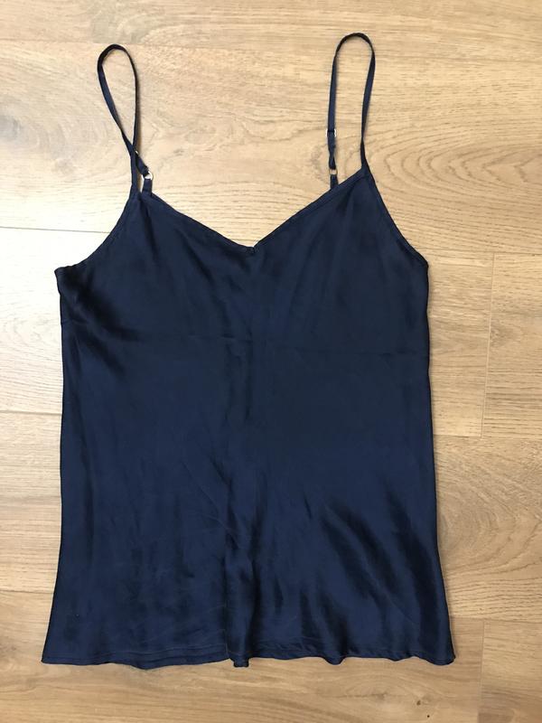 Майка від відомого бренду, натуральний шовк, хороший стан, має лише пару мікророзтяжок тканини( не зачіпки), які взагалі навіть важко знайти, та це враховано у ціні! Бірка з розміром зрізана, тому орієнтуйтеся на заміри. Приблизно, розмір може бути М. Бренд хороший та недешевий!