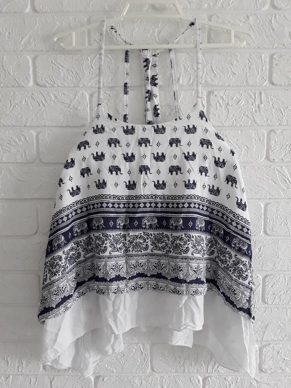 Виробництво - Італія. Розмір - S Склад - 100% viskoza. Фото на тілі немає. Повернення немає. ПОГ - тягнеться до 42см за рахунок гумки ззаду. Довжина виробу - 55см разом з брителями. В талії - вільно.