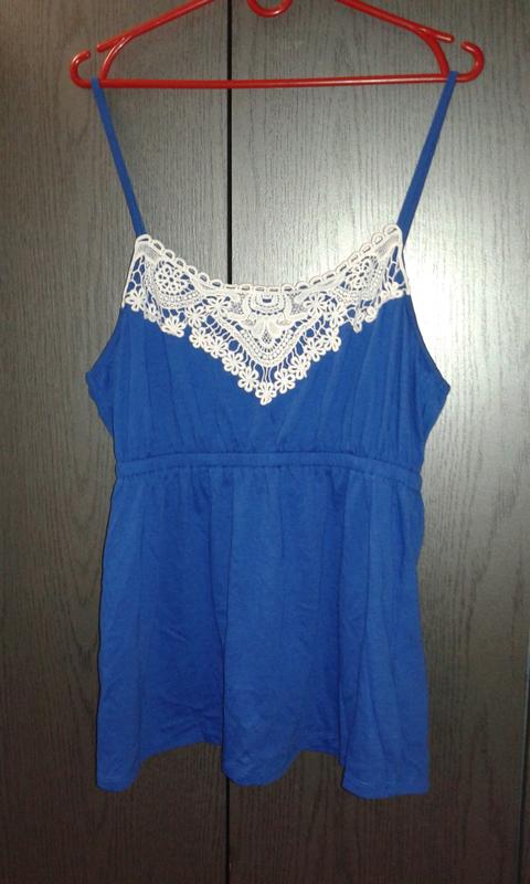 Стильна майка топ ого волошкового кольору NEW LOOK, розмір 18/46. Заміри: ПОГ 60 см, ПОТ на резинці тягнеться до 60 см, ПОБІДИ 65 см, довжина 70 см, бретельки регулюються.