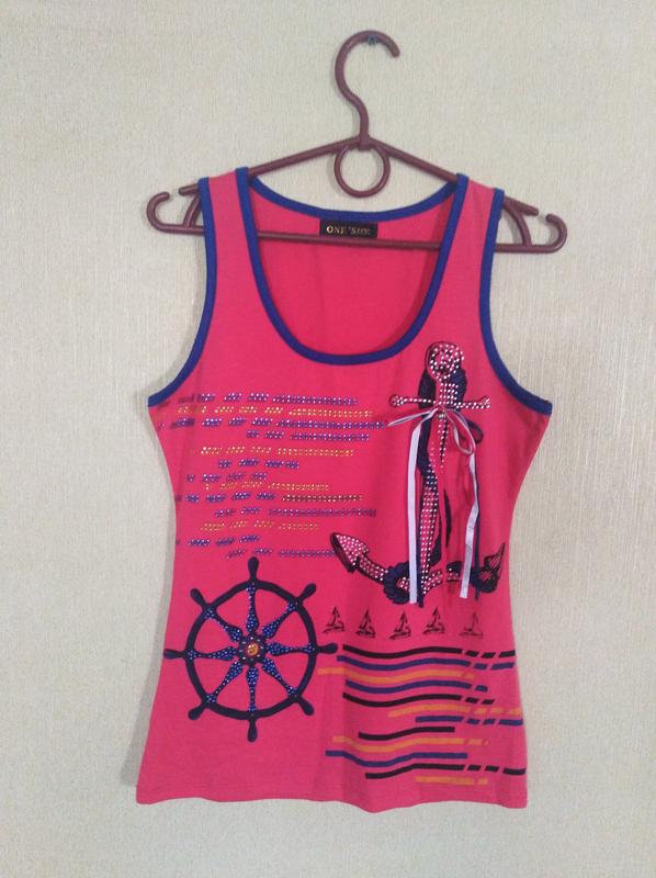 Майка, розмір 44, ширина 39див,довжина 60см, склад 65%бавовна, 35%поліестер, колір кораловий, рожевий