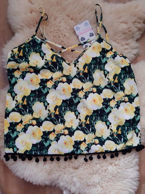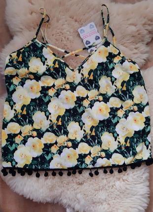 Квіткова маєчка з помпонами від Boohoo. Нова з біркою. Розмір 14, 42, підійде на розмір ХЛ. ПОГ-50 див.