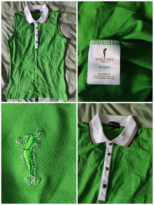 Стильний топ поло зеленого кольору з білим коміром для гри в гольф Golfino розмір 38/М (НОВИЙ), НІ РІЗУ НЕДЕВАЛА) ПОКУПАЛА У Швейцарії у фірмовому магазині. виміри на фото.