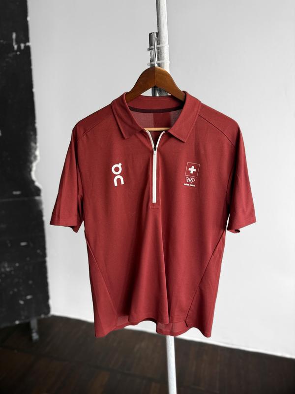 On Running OC Womens Burgundy Swiss Olympic Team Quarter Zip Polo Shirt жіноче, бордове, поло, олімпійське, он раннінг ◾️Стан: 5/5 ◾️Розмір: S/M Заміри: •Довжина спереду від коміра - 53 см •Довжина по спині - 64 см •Довжина рукава від шиї - 38 см •Підмишки - 50 см •Вихід - 51 см
