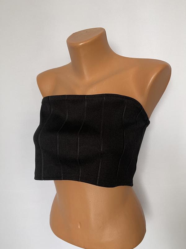 Plt чорний топ кроп топ топік в рубчик базовий бандо prettylittlething