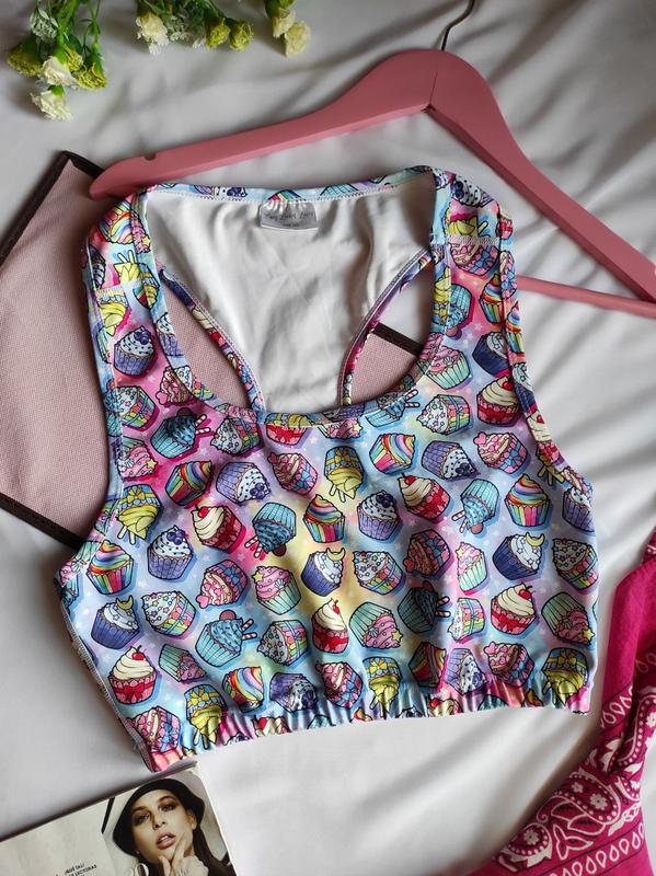 Яскравий кольоровий спортивний топ укорочений з малюнком 🧁 топік кроп-топ майка