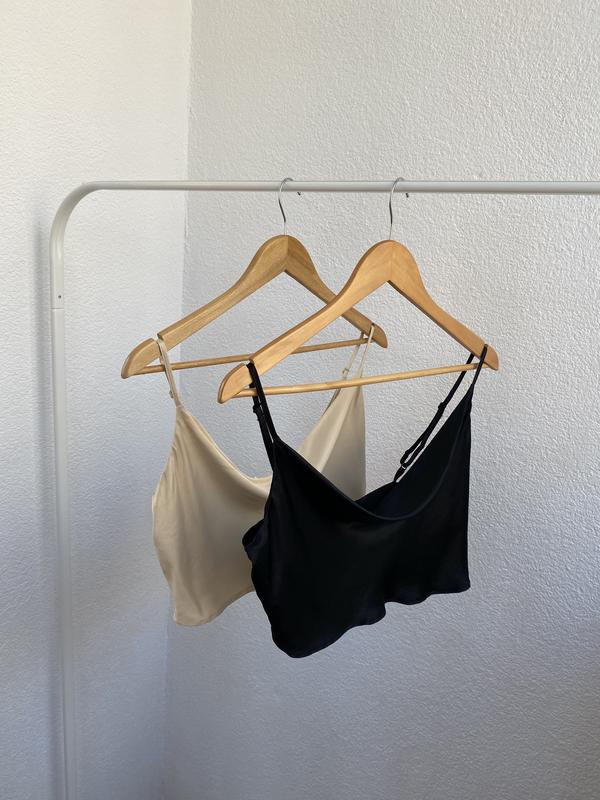 Атласний топ на бретелях Don’t call me Jennifer р-р М стан новий в чорному та пісочному кольорі *ціна за один