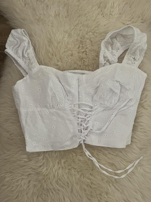 Топ спереди на завязках,размер М, без дефектов,раз надевает