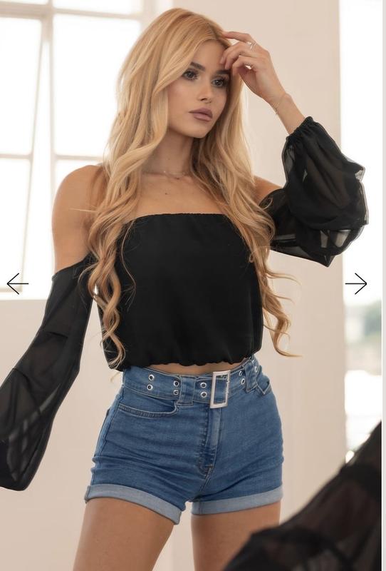 Этот топ имеет эластичный вырез с открытыми плечами, широкие длинные рукава из сетки с присборенными деталями, эластичные манжеты, эластичный пояс и укороченную длину. Этот топ представлен в черном цвете. Состояние отличное Размер 34 (xs) указан Подходит и на s / м Замеры напишу в лс Покупали за 1500