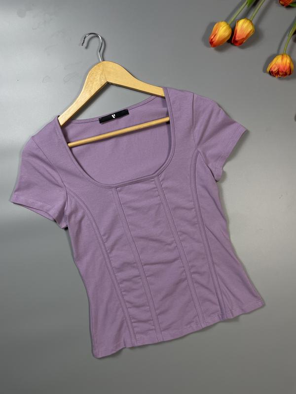 Футболка бузкова корсетна ✅добре тягнеться ✅імітація корсету тільки спереду ✅Стан - ідеальний ✅Склад- 95% бавовна 5% еластан ✅Розмір - UK 10 EU 38 ✅By Very Заміри: ПІГ - 38 + тягнеться Довжина - 55