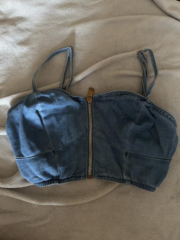 джинсовий топ на застібці,трішки застібка подряпана. стан гарний. розмір s
