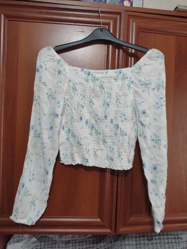 Топ в квітковий принт по грудях резиночкою. Рукав резиночка.