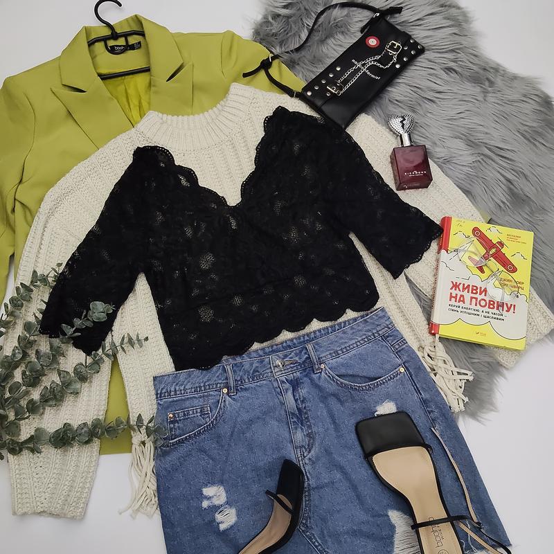 Чорний мереживний ажурний топ короткий 🎀