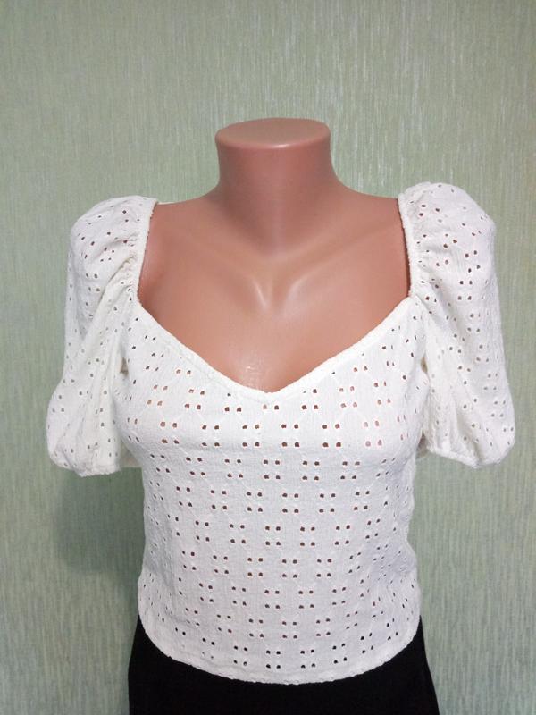 Мереживна коротка блуза, колір молочний. Розмір вказано L 175/104A Виміри в спокійному стані, див. фото. Добре тягнеться. Стан нової, без бирки.
