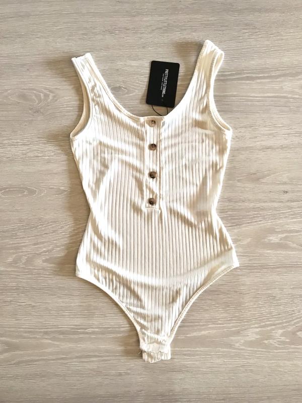 Новий боді Prettylittlething молочного кольоруРозмір 12/40. Довжина 73 см. ПОГ 36 см тягнеться до 51 см. Полістер/еластан.