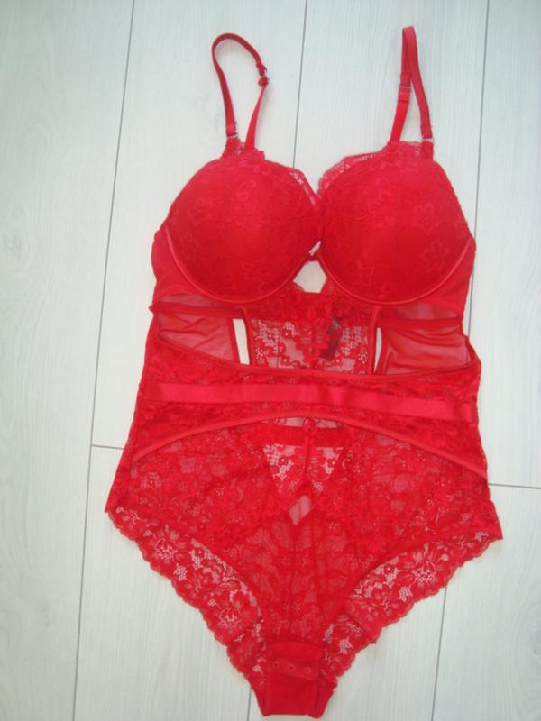 У продажу фантастичний боді від бренду Secret Possessions, розмір по бирці вказаний 80С. Боді червоного кольору, чашка великої щільності пуш ап. Боді виконано з квіткового мережива, дрібної сітки, сатинових ременів, з вирізами під грудьми. Відкрита спинка з перемичкою-гумкою. Застібка на кнопки. Максимальна довжина боді з розпущеними ременями-77см, напівобхоплення під грудьми-34см, ПОТ-36см, ПОБ-43см. Стан боді ідеальний*
