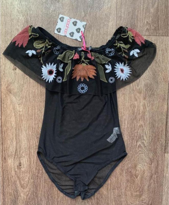 Боді фірми Boohoo, новий, з вишивкою, сітка, напівпрозорий, розмір S, довжина 56 см, напівобхват грудей 33 см