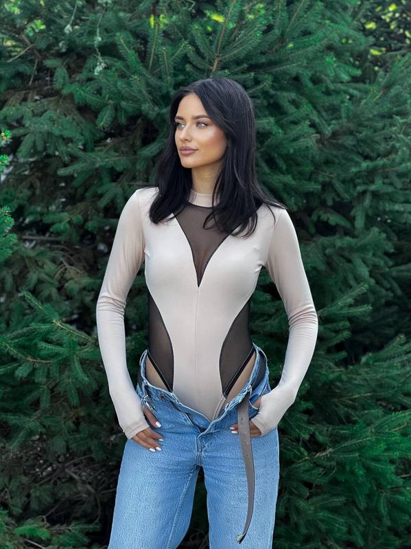 Боді Ціна: 650 грн Артикул: 856-423 Колір: чорний та беж Розмір : 42-44, 46-48 Матеріал: трикотаж олія на флісі та сітка