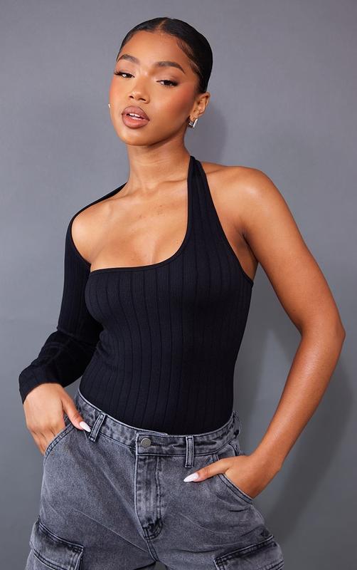 Чорний боді на один рукав prettylittlething