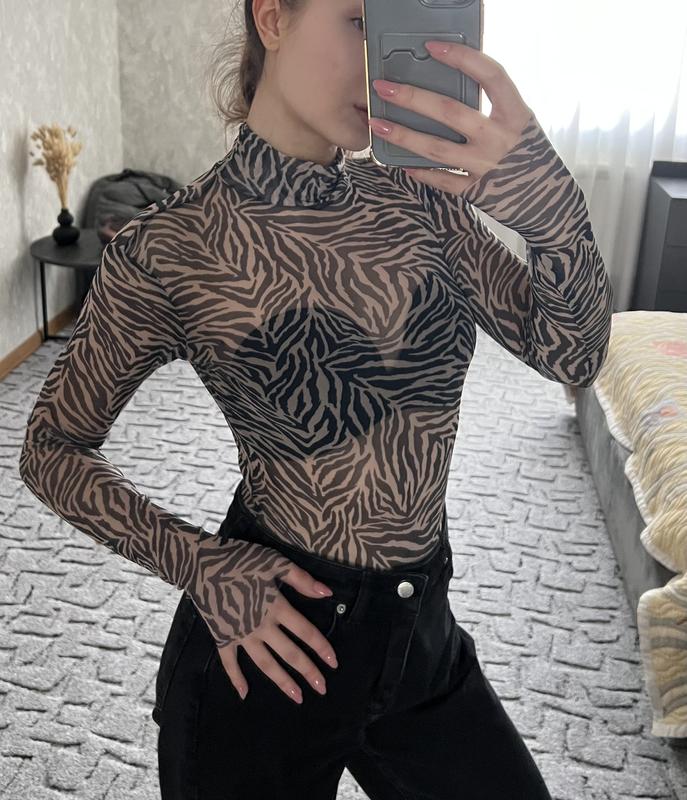 Новий боді, ні разу не одягався! Трендовий принт, напівпрозорий, фон бежевий з чорними візерунками