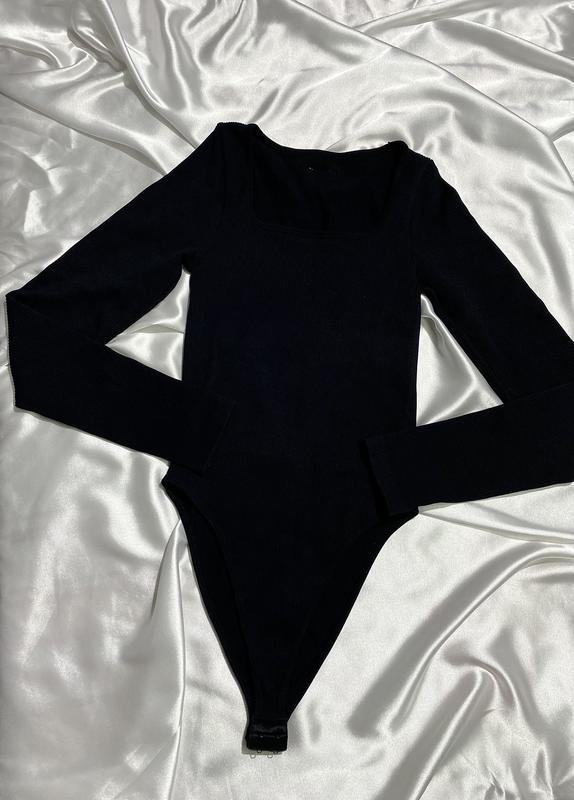 Базовий стягуючий боді чорний monslover на невеликому утепленні в рубчик