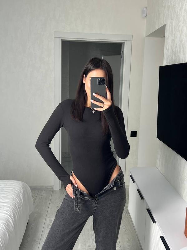Базовий жіночий боді з мʼякої тканини приємний до тіла з довгим рукавом
