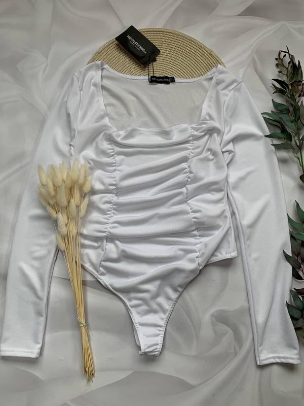 ✨біле боді з рюшами з довгим рукавом prettylittlething✨