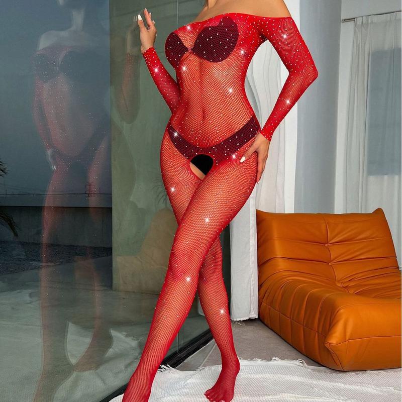 Боді-сітка зі стразами та доступом - чудово облягає і підкреслює фігуру. Колір - червоний Матеріал - нейлон, спандекс Розмір: універсальний (в обхваті до 120 см)