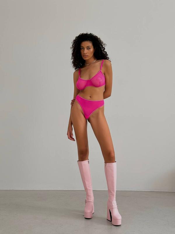 Еротичний комплект 2в1: бюст + трусики стрінги мікросіточка 3 кольори