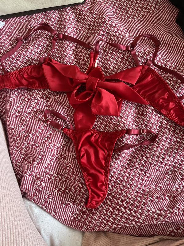 Комплект бюст з відкритим доступом та атласні трусики
