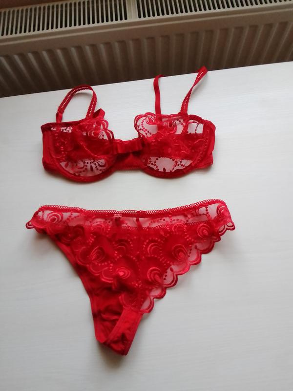 Ажурний комплект відомого бренду. Розмір M-L.Висота низу 22 см ,по верху 33 см. бюстгальтер об'єм 67 см ,глибина чашки 17 см. Без пуш-апу. літній варіант. бюстгальтер в подарунок