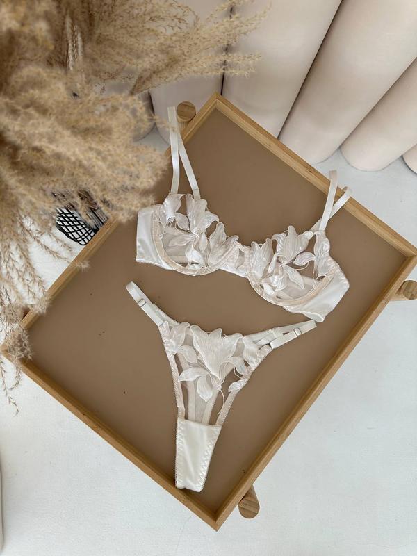 Комплект білизни з вишивкою. бюстгальтер та трусики стрінги