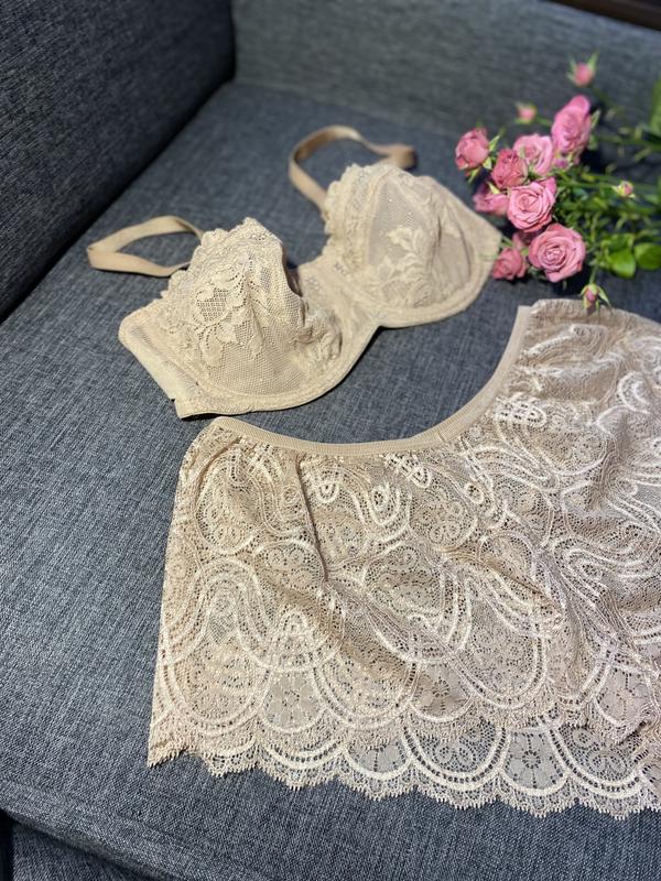 Не Комплект ,але дуже сходяться Можна купити окремо Трусики: По талії -30 Висота посадки -25 Бедра -до 55 Бюстик : Новенький по бірці -80с Брителі регулюються Винаявності такий же є ще чорний