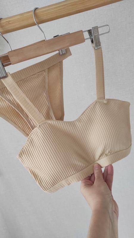 в наявності білий, чорний, бежевий СІРИЙ проданий ❌ нові комплекти, не сток Бретелі не регулюються чашка виймається, можна носити без поролонової чашки Трусики сліпи , середня посадка обхват під грудьми 75-80 см чашка ВС трусики 85-90 см стегна працюємо офіційно ФОП є відправка безпечною оплатою