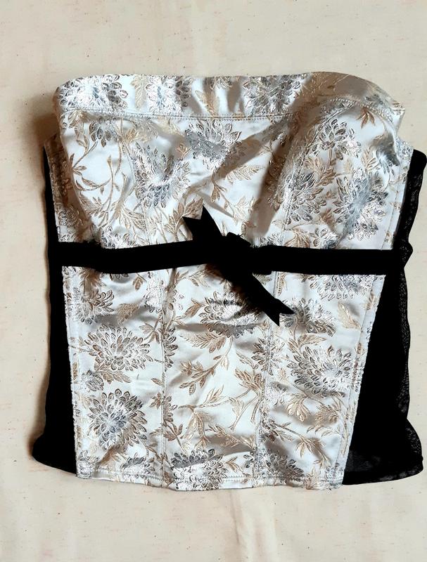 Сексуальний та ефектний корсет від бренда H&M ошатний парчовий з квітковим принтом. Модель без бретелей, але кріплення для бретелей наявні. Стягувальний ефект завдяки стрейчевим фатиновим вставкам із боків Такий корсет зробить ваш образ стильним і ефектним. Виріб можна легко поєднувати практично з будь-яким одягом. Ідеально обтягує фігуру, приємний до тіла, зручний, практичний і добре захищає спину та інші частини тіла. Стан НОВОЇ ВЕЖИЛИ. Модель створена з 60% поліаміду, 27% віскози, 11% металізована нитка та 2% еластан. ЗАМІРИ обхват верх/низ 65/59 см, довжина від талії перед/спинка 33/20 см 86