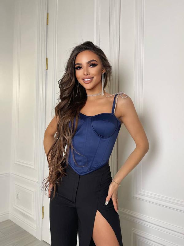 Атласний корсет оздоблений брителями зі страз - це поєднання розкоші та елегантності. Корсет стане чудовим вибором для вечірок, романтичних побачень або особливої подій на яких ви будете виглядати бездоганно Розмір: One size